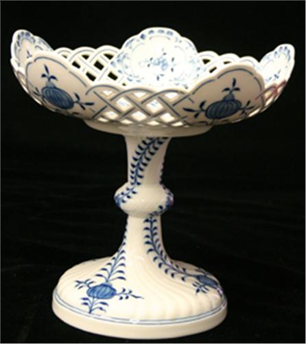 SKÅL PÅ FOT, GENOMBRUTEN, BLÅTT LÖKMÖNSTER, MEISSEN, H22