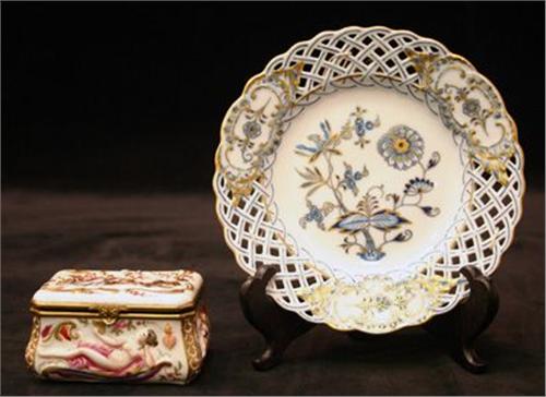DOSA, POLYKROM BAROCKDEKOR I RELIEF, ITALIEN, 1800-TALETS SENARE DEL, H5, B7 GALLERFAT, LÖKMÖNSTER MED GULD, MEISSEN 1900-TAL, D15 (2)