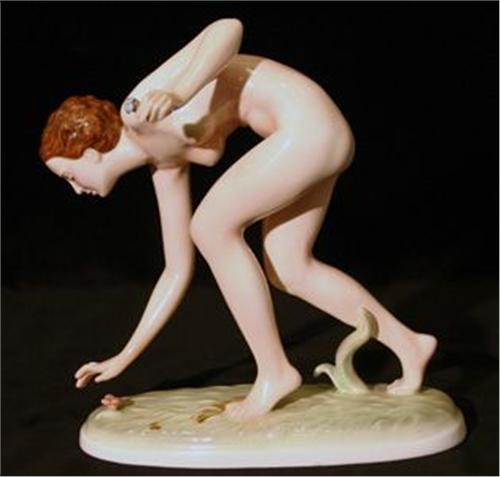 FIGURIN, NAKEN BLOMSTERPLOCKANDE FLICKA, ÖSTERRIKE, GOLDSCHEIDER, ART DECO, H24