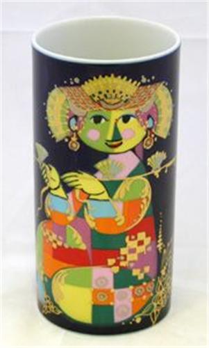 VAS, BJÖRN WIINBLAD, ROSENTHAL, STUDIO-LINE, CYLINDERFORMAD, FIGUR I POLYKROMT OCH GULD MOT BLÅ GRUND, H18, D9