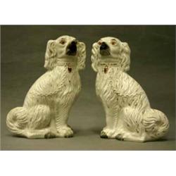 1 PAR SPISHUNDAR, VIT GLASYR MED GULDDEKOR, ENGLAND 1800-TALETS SENARE DEL, H35