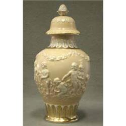 LOCKURNA, GLASYR I GULD OCH BEIGE, BALUSTERFORMAD, DEKOR AV AMORINER I RELIEF, VON SCHIERHOLZ, 1930-TAL, H50