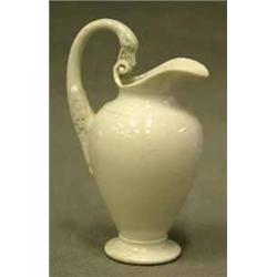 VAS I FORM AV KANNA, UPPSVÄNGT FÅGELFORMAD HÄNKEL, VIT GLASYR, MEISSEN, 1700-TALETS SENARE DEL, H15 (GLASYRNAGG)