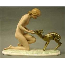 FIGURIN, NAKEN FLICKA MATANDE RÅDJURSKID, HUTSCHENREUTER, SIGN. C.WERDER, H25, L33