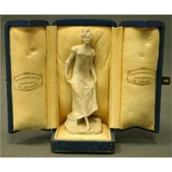 FIGURIN, PARIAN, SEVRES, DANSANDE KVINNA, JUGEND (SKADOR OCH LAGNINGAR) SÄMSKINNSFODRAT ETUI MEFÖLJER, C. 1900, H15