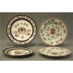 4 TALLRIKAR, POLYKROM DEKOR AV BLOMMOR OCH VAPEN, SAMSON PARIS, 18/1900-TAL, D23-27