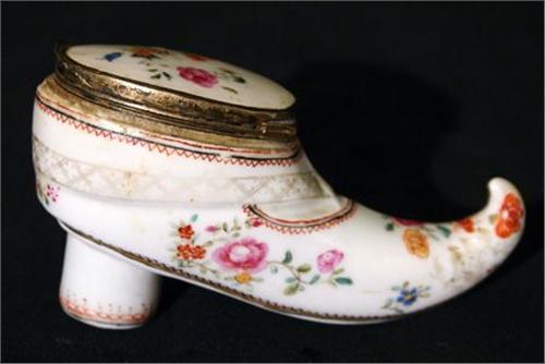 LUKTDOSA I FORM AV SKO, POLYKROMT MÅLERI, 1800-TAL, H5, B10
