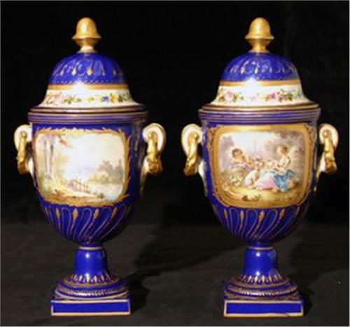 LOCKURNOR, PASTORALA ROKOKOMOTIV PÅ BLÅ GRUND, SEVRES LIKNANDE MÄRKE, FRANKRIKE 1800-TAL. 1900, H31 (EN LOCKKNOPP LAGAD) (2)
