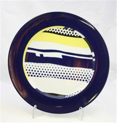 FAT, BLÅ KANT MED BLÅ OCH GULDDEKOR, ROSENTHAL, DESIGN ROY LICHTENSTEIN, 195/3000, ORIGINALKARTONG, D30
