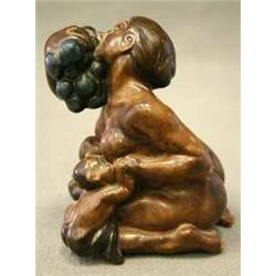 FIGURIN, BING & GRÖNDAHL, SIGN. KAI NIELSEN, BRUN GLASYR, KVINNA ÄTANDE PÅ VINDRUVOR AMMANDE 2 SATYRER, H14