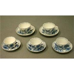 2 KAFFEKOPPAR, 3 MOCCAKOPPAR, MEISSEN, BLÅVITT LÖKMÖNSTER, ROKOKOFORM, (5)