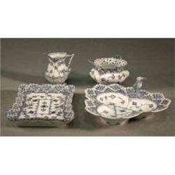 KAKFAT, LÖVFORMAT, GREPE I FORM AV SLÄNDA, BRICKA MED SOCKERSKÅL OCH GRÄDDKANNA, GENOMBRUTEN KANTDEKOR, HELBLOND, "MUSSELMALET" ROYAL COPENHAGEN (4)
