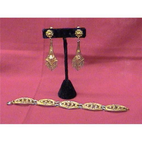 EUROPEAN STERLING SILVER GOLD WASH WIRE WORK BRACELETE AND EARING IN PERFECT CONDITION.THE EARRRINGS ARE SCEWBACK STYLE.AND THEY ARE SIGNED.