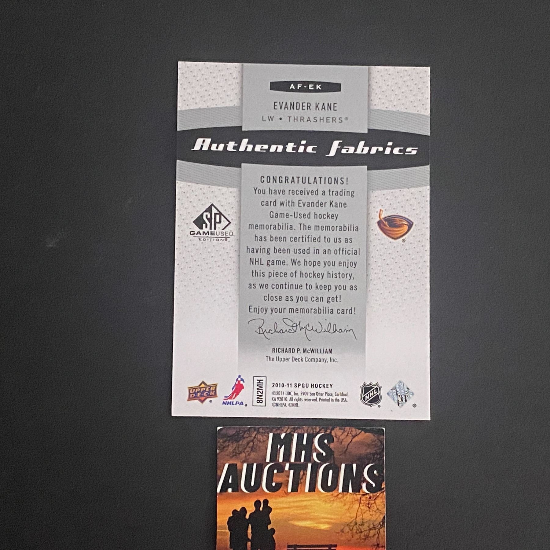EVANDER KANE ATLANTA THRASHERS 2010-11 SPGU JERSEY CARD