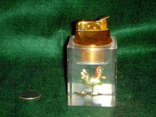EVANS CLEAR PLASTIC TABLE LIGHTER W/CHICKEN FIGURINE