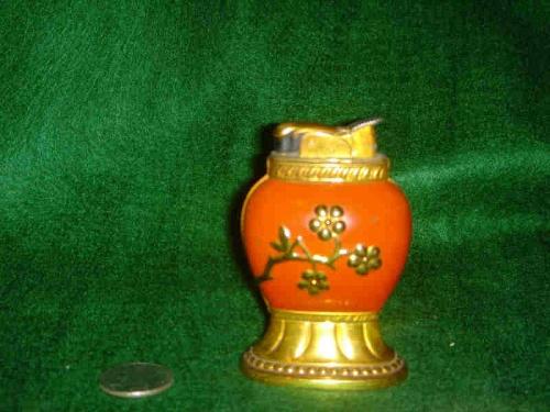 EVANS RED TABLE LIGHTER W/FLOWERS - PAINT CHIP