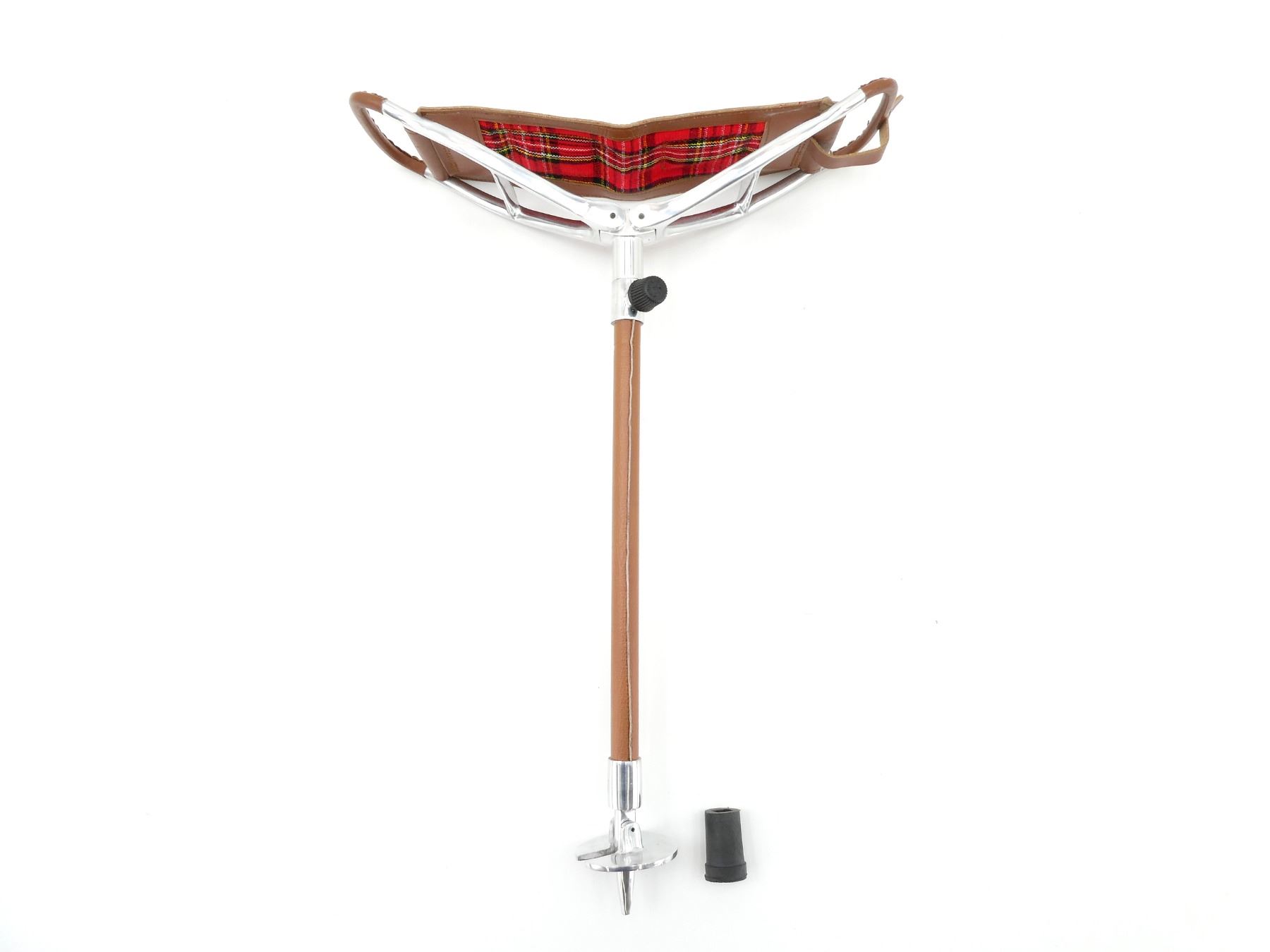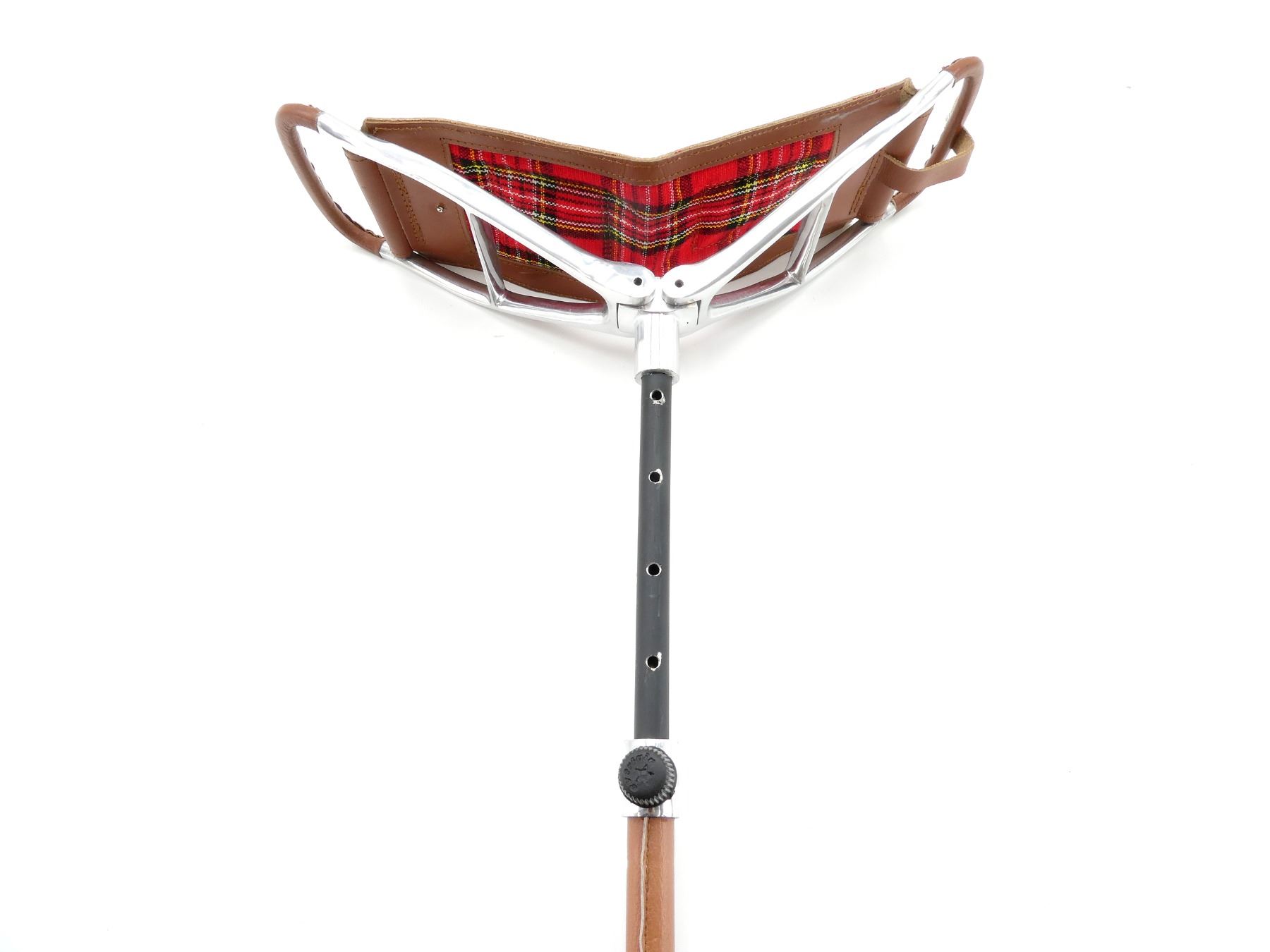 (1) EVERFAIR PORTABLE STOOL, METAL CONSTRUCTION WITH LEATHER SEAT, FOLDABLE WITH CARRY HANDLES, OVERALL LENGTH APPROX. 29", EXTENDED OVERALL LENGTH APPROX. 36". SEE PHOTOS.