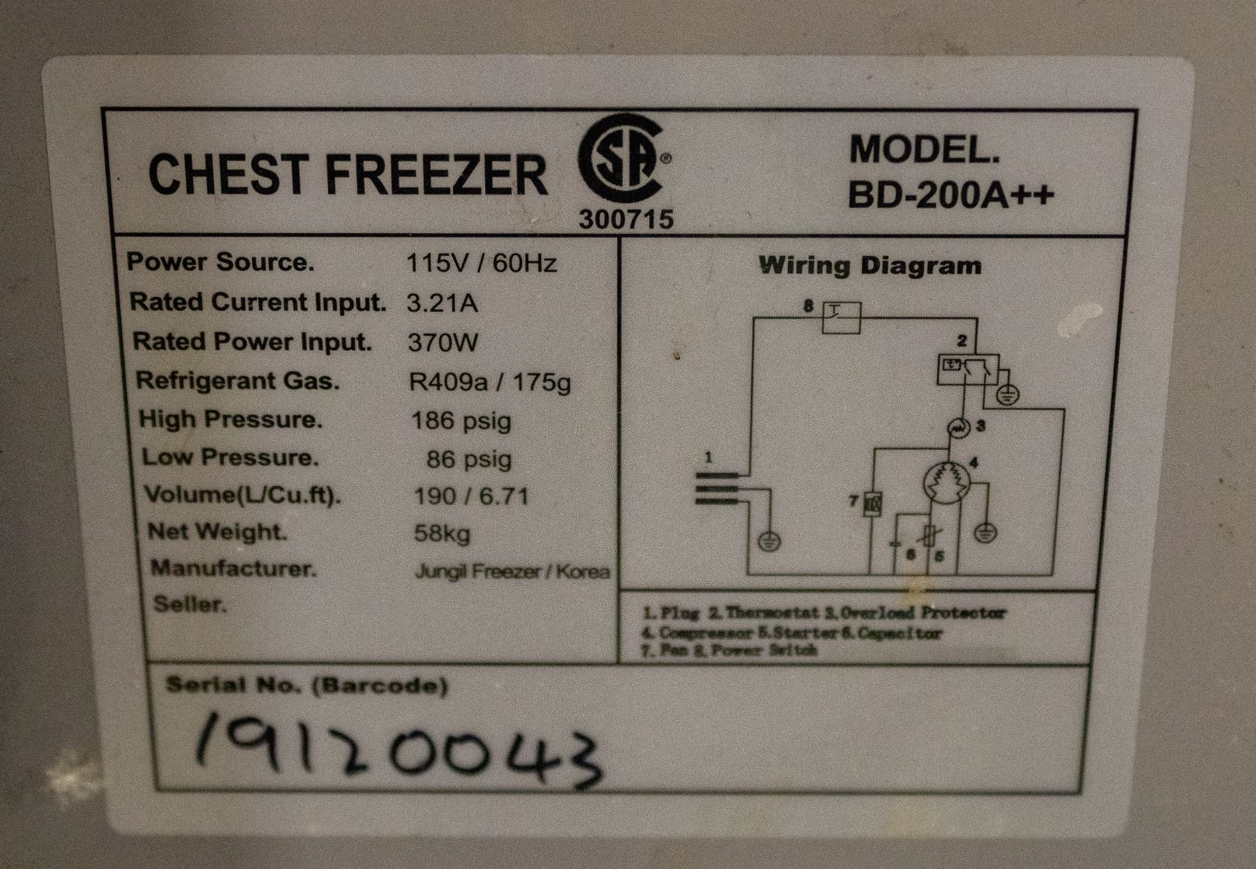 MODEL # BD-200A++, 115 VOLTS, 60 HZ, 3.21 AMPS, 370 WATTS, 58 KG, 37.5' X 27" X 36"