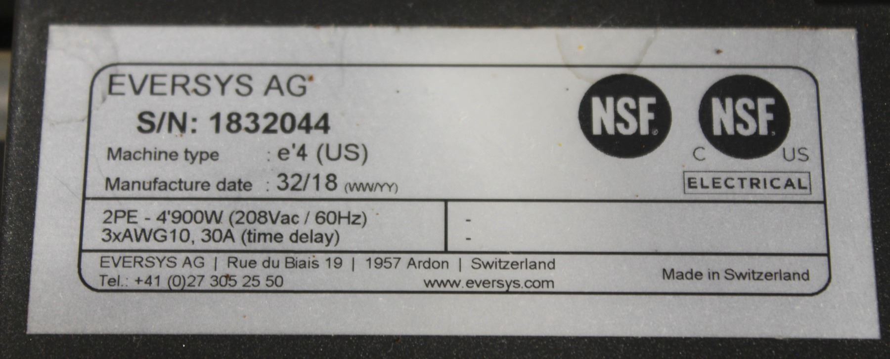 MODEL: E'4. CAPABLE OF 350 ESPRESSOS PER HOUR. 208V