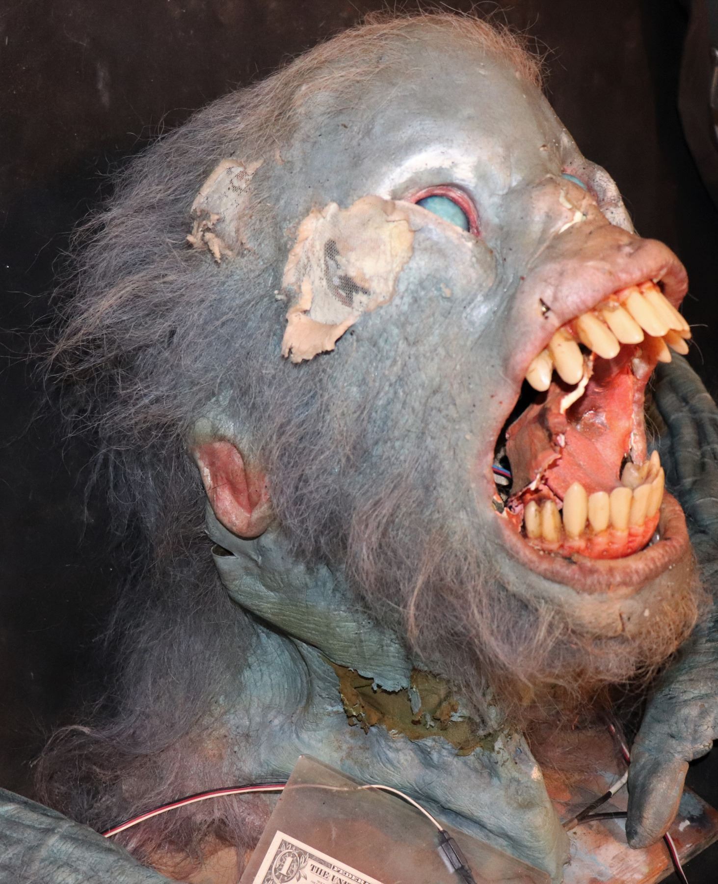 There were a few static foam back ground heads but this is the close up silicone animatronic hero!