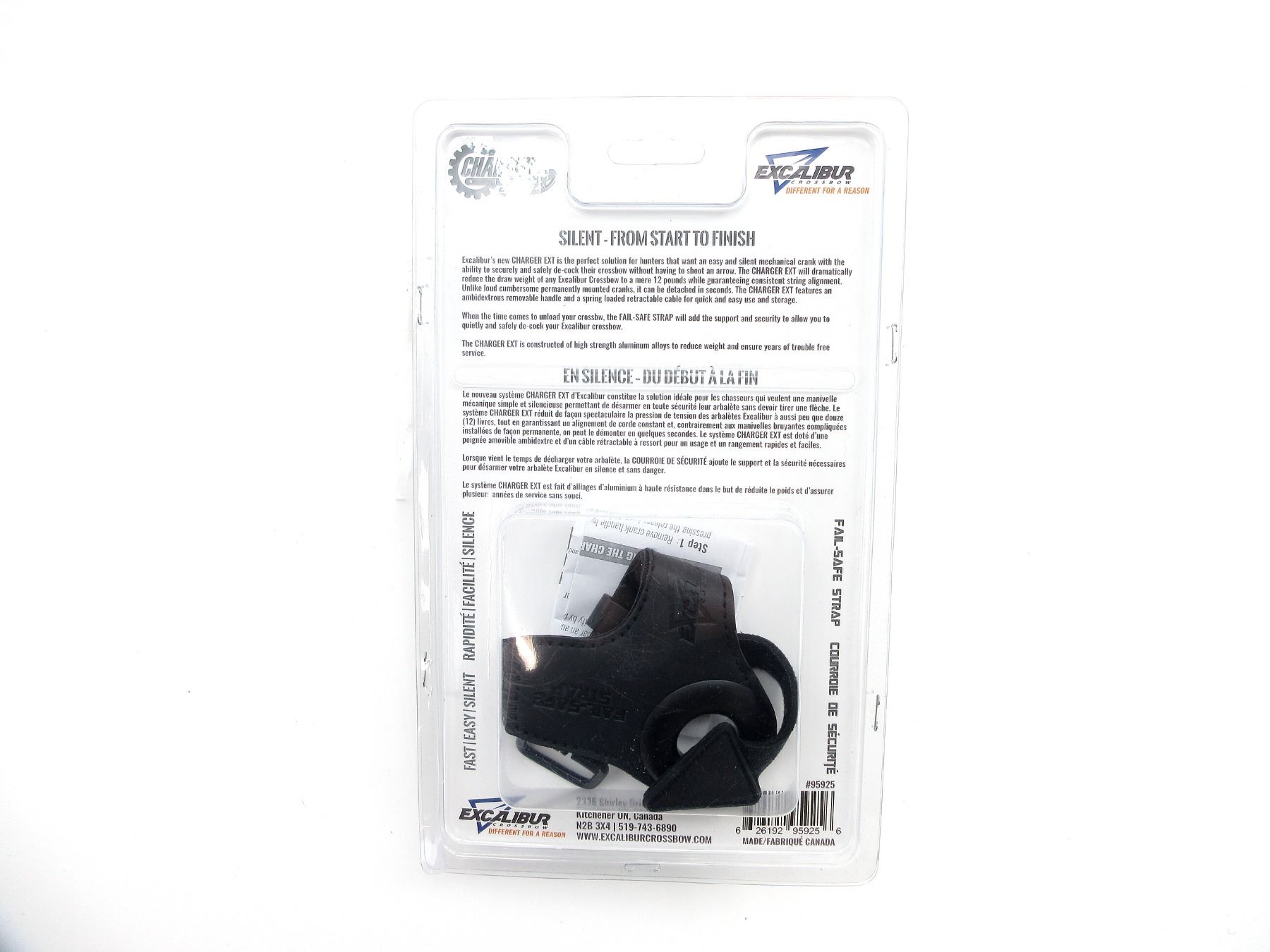 LOT INCLUDES; (1) CHARGER EXT CRANK SYSTEM, IT ALLOWS YOU TO EASILY DRAW YOUR EXCALIBUR CROSSBOW AND SAFELY DE-COCK IT IN COMPLETE SILENCE, (1) FAIL-SAFE STRAP, NOS, UNOPENED, SEE PHOTOS.