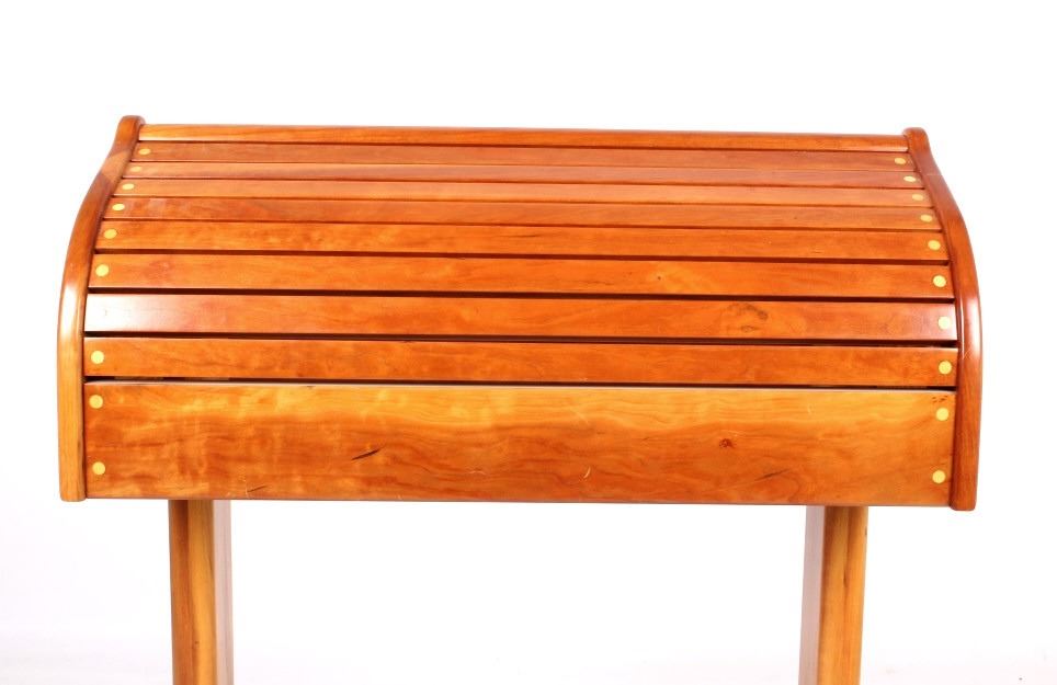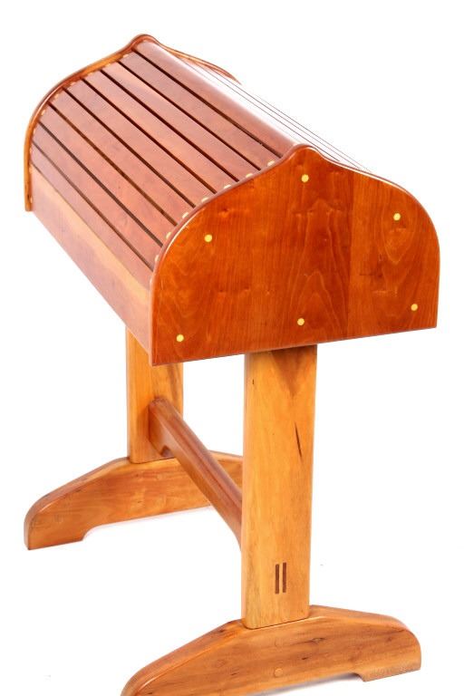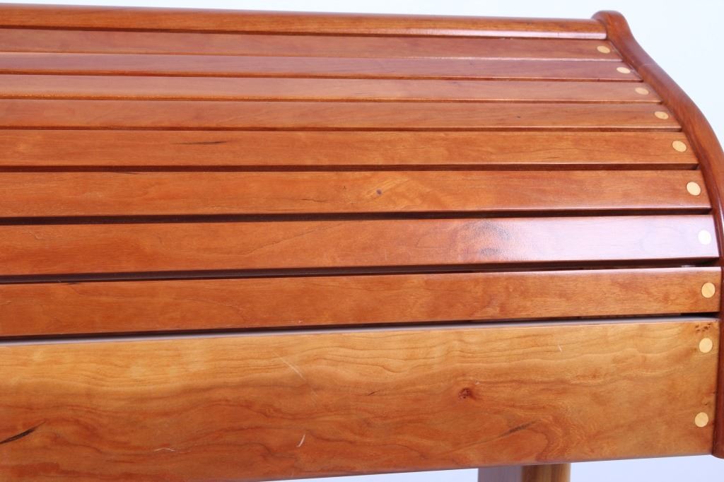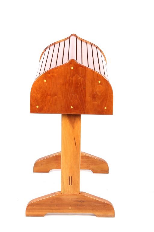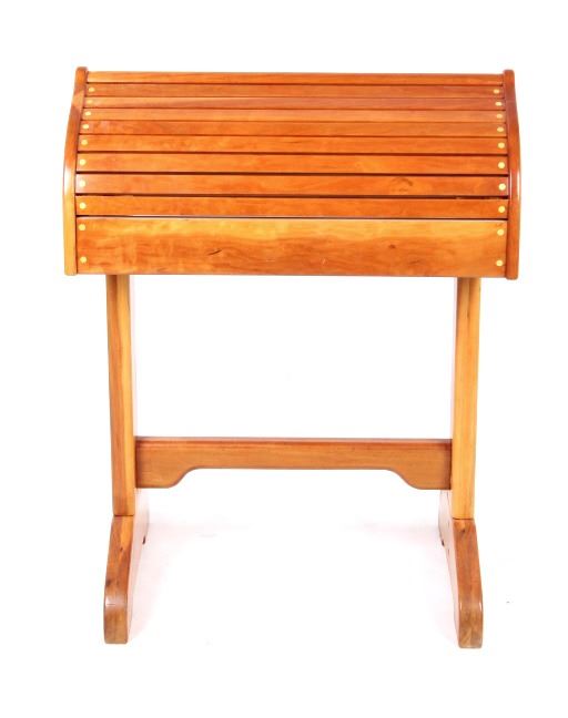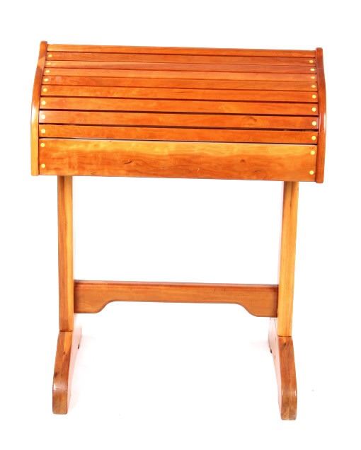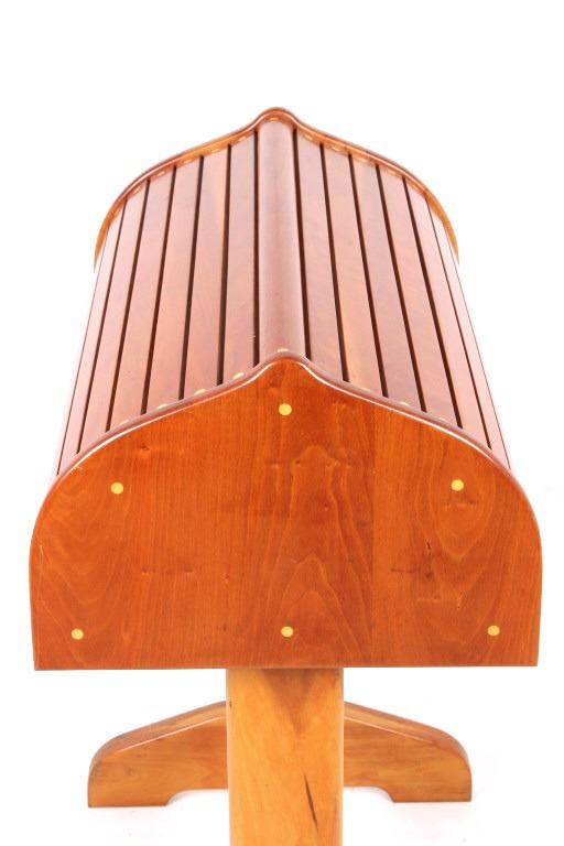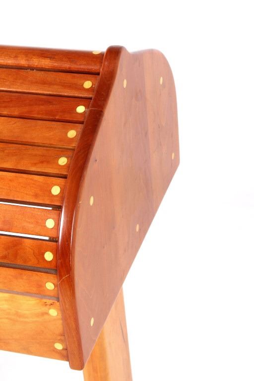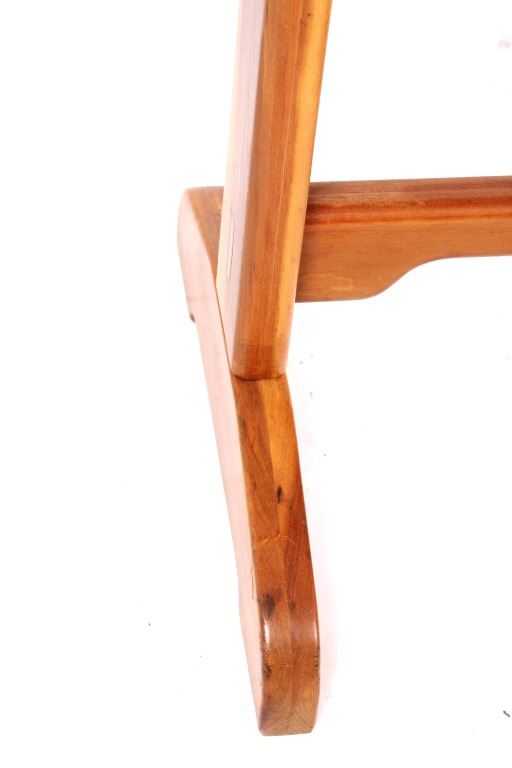 For your consideration is this beautiful cherry saddle stand with maple plugs. The saddle stand features mortise and tenon construction and has a beautiful unmarred finish. The saddle stand measures 27" long at the tree; 19" wide at the base; it stands 35" tall at the center. Provenance: From the Ladder Ranch & Diamond Bar 7 Brand located just East of Big Timber, Montana near the Montana Crazy Mountains.