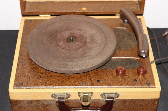 EXCELLENT PORTABLE AND LIFT TOP VICTROLA IN MINT PLAYABLE CONDITION BY MONTGOMERY WARDS - #84 ? GHM ? 926B