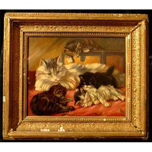 Description: - OIL - AN AMUSING AND VIVID CATS FAMILY: SCENE OF GENRE WITH CATS: The painting shows a family of cats: the subjects painted by the author are five and realized very realistically with dense masterstrokes, in order to paint the hair of the dolphin. They are highly expressive with eyes made vivid by touches of paintbrush in bright colours. The chromatic accords are very interesting and go from the pink colour of the bottom to the ochre one of the background, with recalls to touches scattered in the composition. The viewer has the impression that the cats in the picture are alive, just thanks to this use of colour that goes from pink to ochre. The picture is suggestive both in distance and in closeness, and it's suitable for any atmospheres.