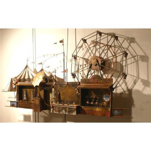 EXCEPTIONAL FIGURATIVE CURTIS JERE SCULPTURE WITH A CARNIVAL SCENE AS A SUBJECT. GREAT TEXTURES, SHAPES,