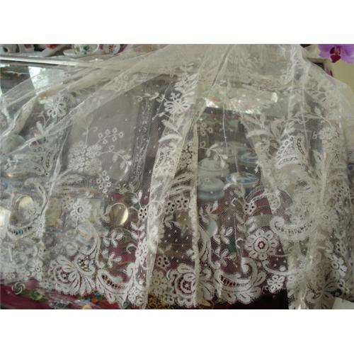 What a fantastic example of beautiful antique French lace! This large panel is a creamy white lace that looks perfect to be a wedding veil. It measures 34 inches wide and 35 inches in length, absolutely in wonderful condition-no holes or stains. It would be a decorator's dream to have this panel or for heirloom sewing and adding to your antique textiles and lace collection. A true find!