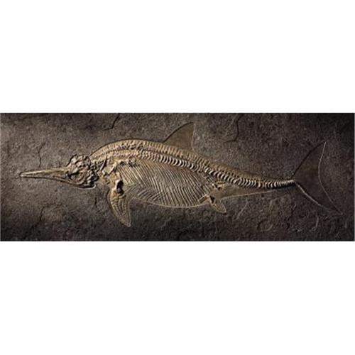 <B>EXCEPTIONAL ICHTHYOSAUR</B></I><BR> <I>Stenopterygius guadriseissus<BR>Jurassic<BR>Posidonienshciefer Formation, Holzmaden, Germany</B></I><BR>This wonderful specimen of the great aquatic reptile is one of the finest a collector could hope to find; So well preserved that one can even see the remnants of its last meal behind the bar-like rows of slender ribs (a squid-like belmnite, identifiable from its hooklets). It is almost entirely complete, with no restoration and in a beautiful state of preservation; one's eye can wander from the well-ordered and delineated bones of the tail fin and body skeleton, via the almost abstract circular patterning of the flippers, to the detailed structure of the snout, with the characteristic sclerotic ring, the bone that supported its non-spherical eyeball, proportionately the largest of any animal ever to have lived. The areas apparently lacking in the dorsal and tail fins in fact had no bony structure to be preserved, but their presence is artfully conjured in the viewer's imagination through the skill of the preparator. The ichthyosaur - Greek for "fish lizard" - first appeared 250 million years ago, 20 million years before the first dinosaur, and became extinct about 25 million years before their land-dwelling counterparts (about 90 million years ago). They seem to have evolved from land-dwelling reptiles who returned to the oceans. The structure of their flippers suggests that the bones evolved from a form more similar to an arm and a hand, with fingers and a thumb-like appendage. Once back in the water, however, the ichthyosaur developed a form built for speed, similar to today's tuna, with elongated snout, sleek body and powerful propulsive flippers. It retained the need to breath air, like today's cetaceans, but as it became more adapted to life in the water (like today's cetaceans it was a deep diver) it lost the ability to return to land to lay eggs, and became viviparous, producing young through live birth in shallow waters (also like today's cetaceans). There were several species of ichthyosaur, but this example, at approximately 8 ½ feet in length, is amongst the largest for its genus, and is beautifully presented in a plaque of Holzmaden shale measuring 120 x 49 inches. A truly world-class fossil.<BR><BR><b>Shipping:</b> Requires 3rd Party Shipping (<a target="_blank" href="http://www.heritageauctions.com/common/shipping.php">view shipping information</a>)