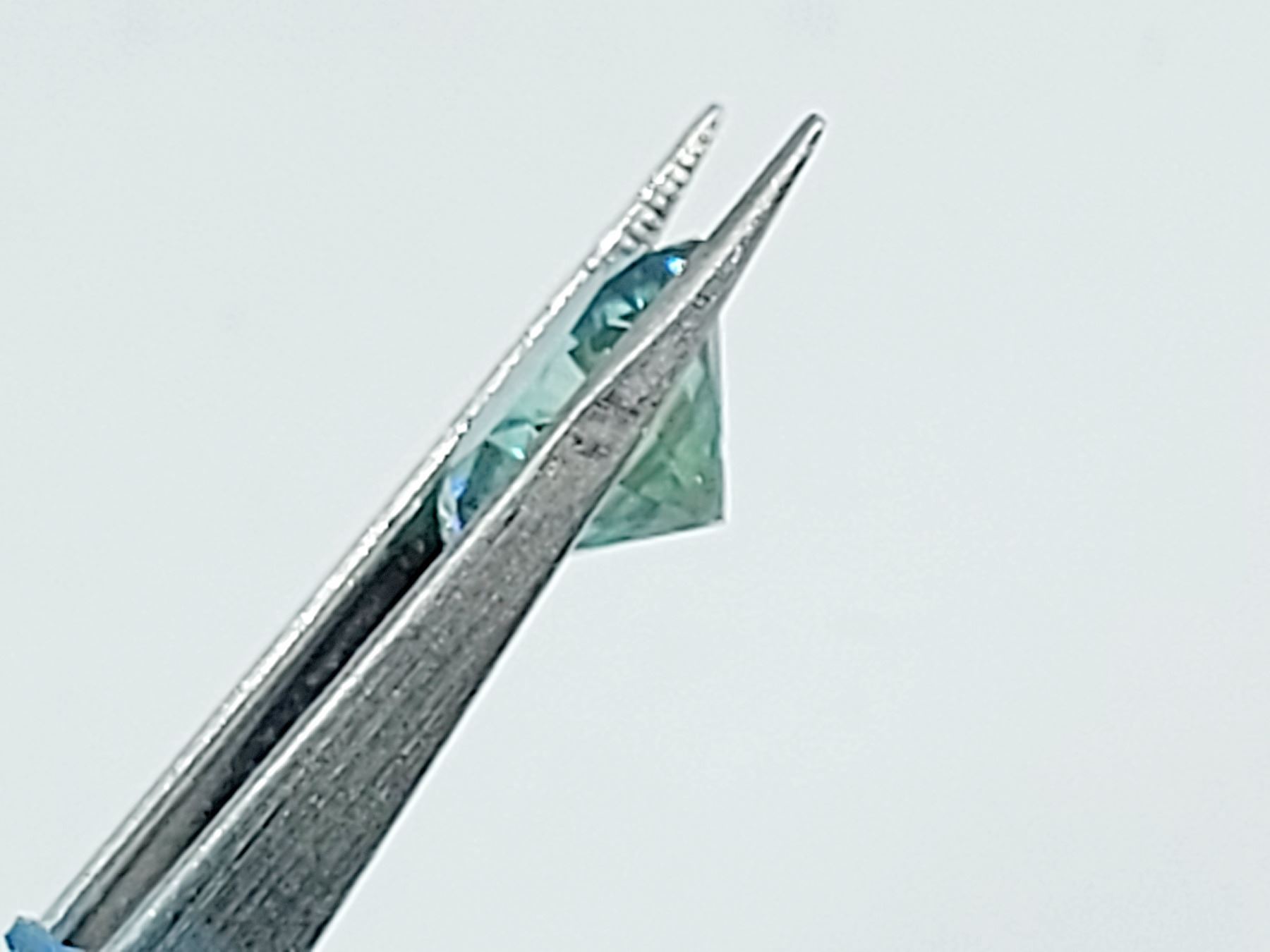 7.08 ct. 12.52 x 7.64 mm. Colour: Bluish Green , Shape: Round (Brilliant) Cut , Clarity: VVS - Eye Clean , Luster: Stunning , Origin: USA Untreated Has more scintillation than diamond
