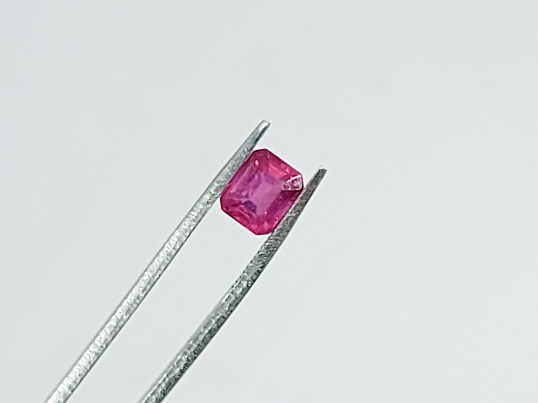 1.85 ct. 6.7 x 5.5 x 4.1 mm Colour:Red , Shape: Emerald Cut , Clarity: VVS - Eye Clean , Luster: Exceptional , Origin: Madagascar Heated G.F.