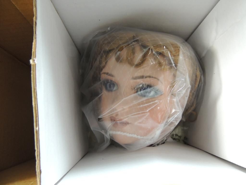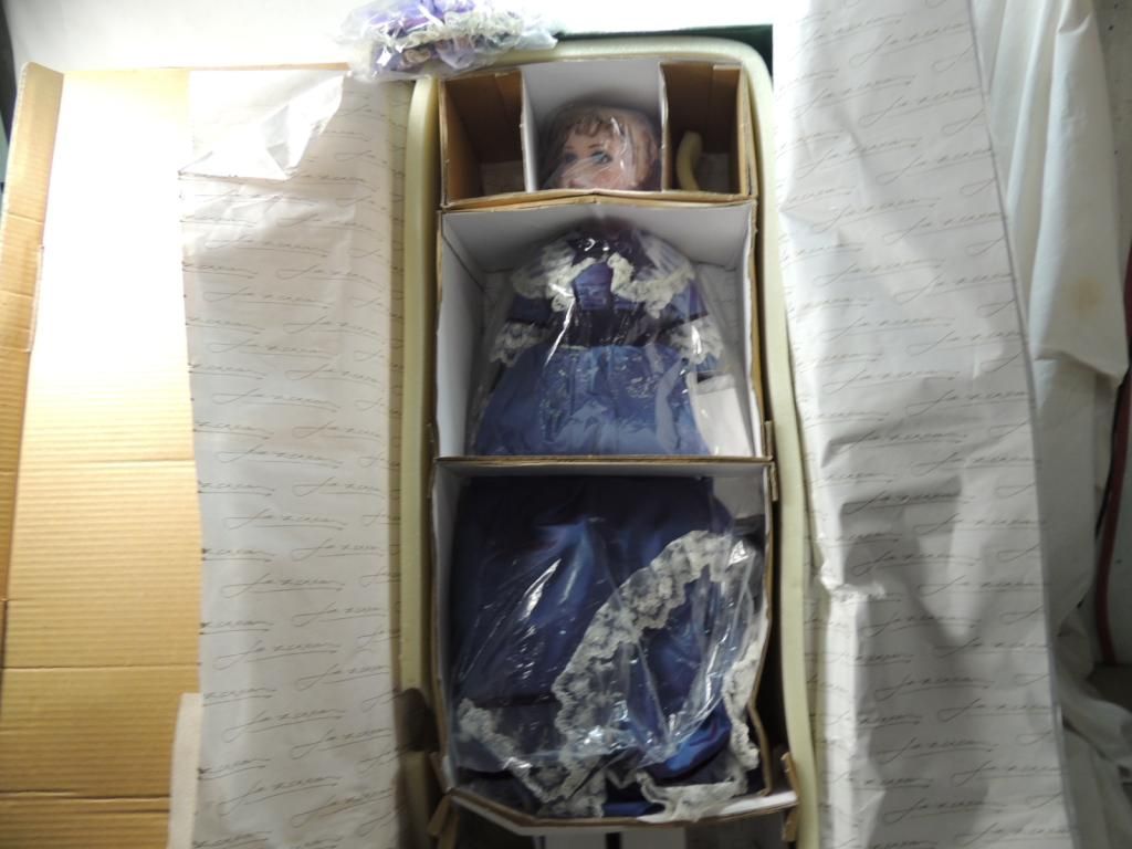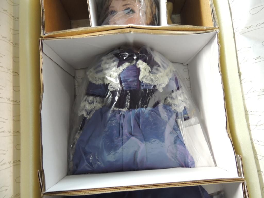EXCULSIVELY YOUR PORCELAIN DOLL IN ORGINAL BOX. BY JAN MCLEAN. #316/1000 COA INCLUDED. GREAT CONDITION. ELEGANT PURPLE DRESS AND BONNET. AS SHOWN. SEE PHOTO FOR MORE DETAILS.
