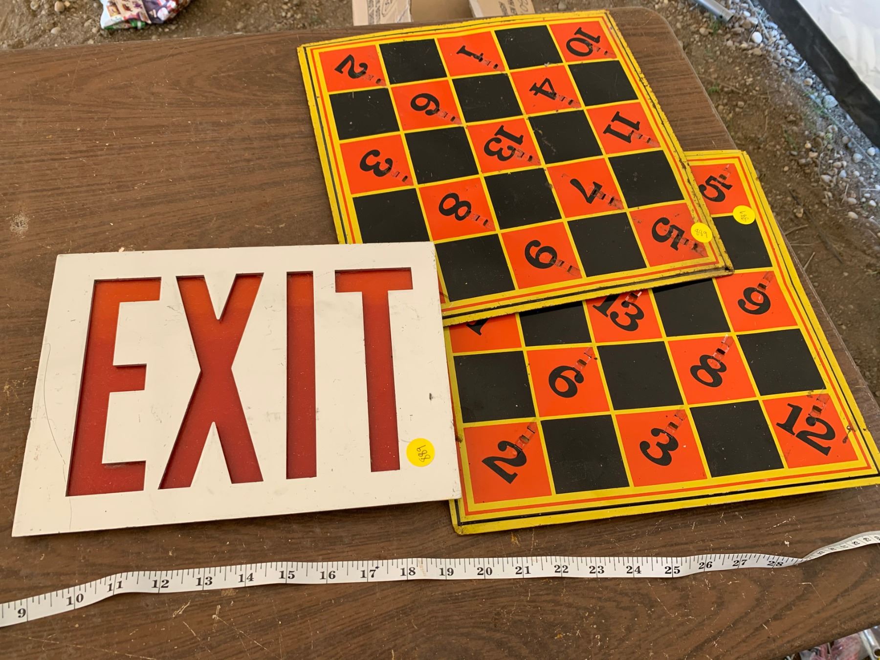 EXIT SIGN AND TIN BOARDS