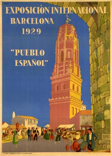 NOGUES, X. EXPO. INTERNACIONAL DE BARCELONA. PUEBLO ESPAÑOL. 1929. 100x70cm. (40x27in.). Litografía. A-. Entelado.