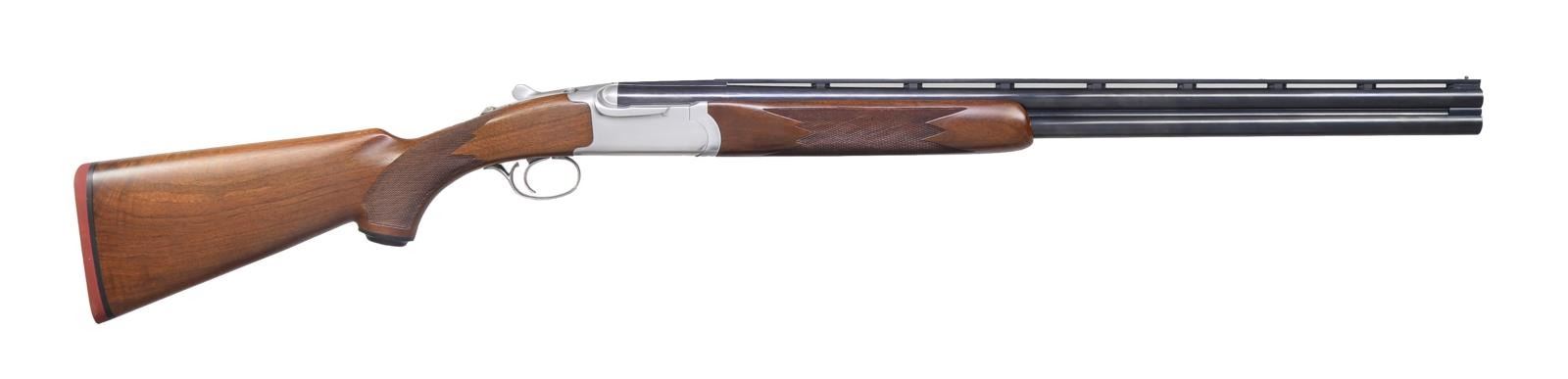 ENGRAVED "1 OF 51" ON TRIGGER GUARD. Cal. 20 Ga.,3". S# 400-13503. Standard target configuration w/ 26" fixed choke bbls. w/ side ribs & ventilated top rib. Right side of monobloc is stamped "SKEET" & "SKEET". Standard stainless steel action w/ single selective trigger has Ruger markings on bottom. Trigger guard bow engraved "1 of 51". Capped pistol grip stock is of lightly figured American walnut & measures 14 1/4" over red Ruger pad. Full skeet forend matches well. UNATTACHED ACCESSORIES: original white cardboard box w/ end label for this shotgun, containing instruction manual. Letter from Sturm Ruger & Co. indicating that this gun is "1 of 51" of the "first preproduction experimental group of 20 ga. stainless steel o/u shotguns." "These were originally produced & boxed in 1979. In January of 1985, a decision was made by the management" "to sell these units to employees & friends of the company." CONDITION: very fine w/ evidence of limited firing. Bbls. retaining over 95% blue w/ chatter marks from firing on sides under forearm. Breech face shows extractor wear. There are only the faintest handling marks in all external surfaces. Box is fine, lightly soiled. (20-1651/MGM75). MODERN. $1,500-3,000.