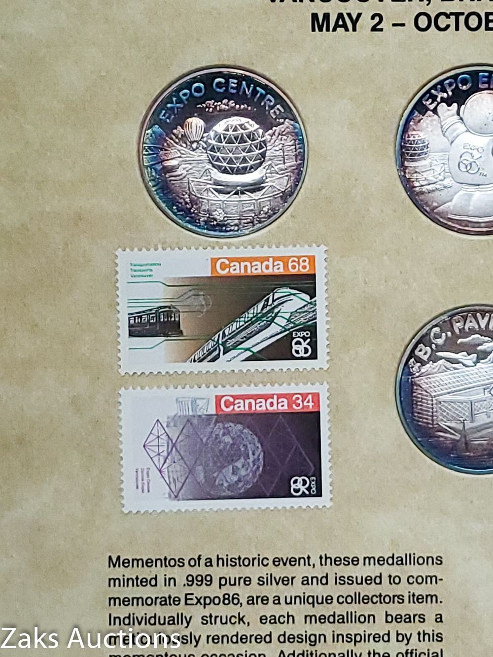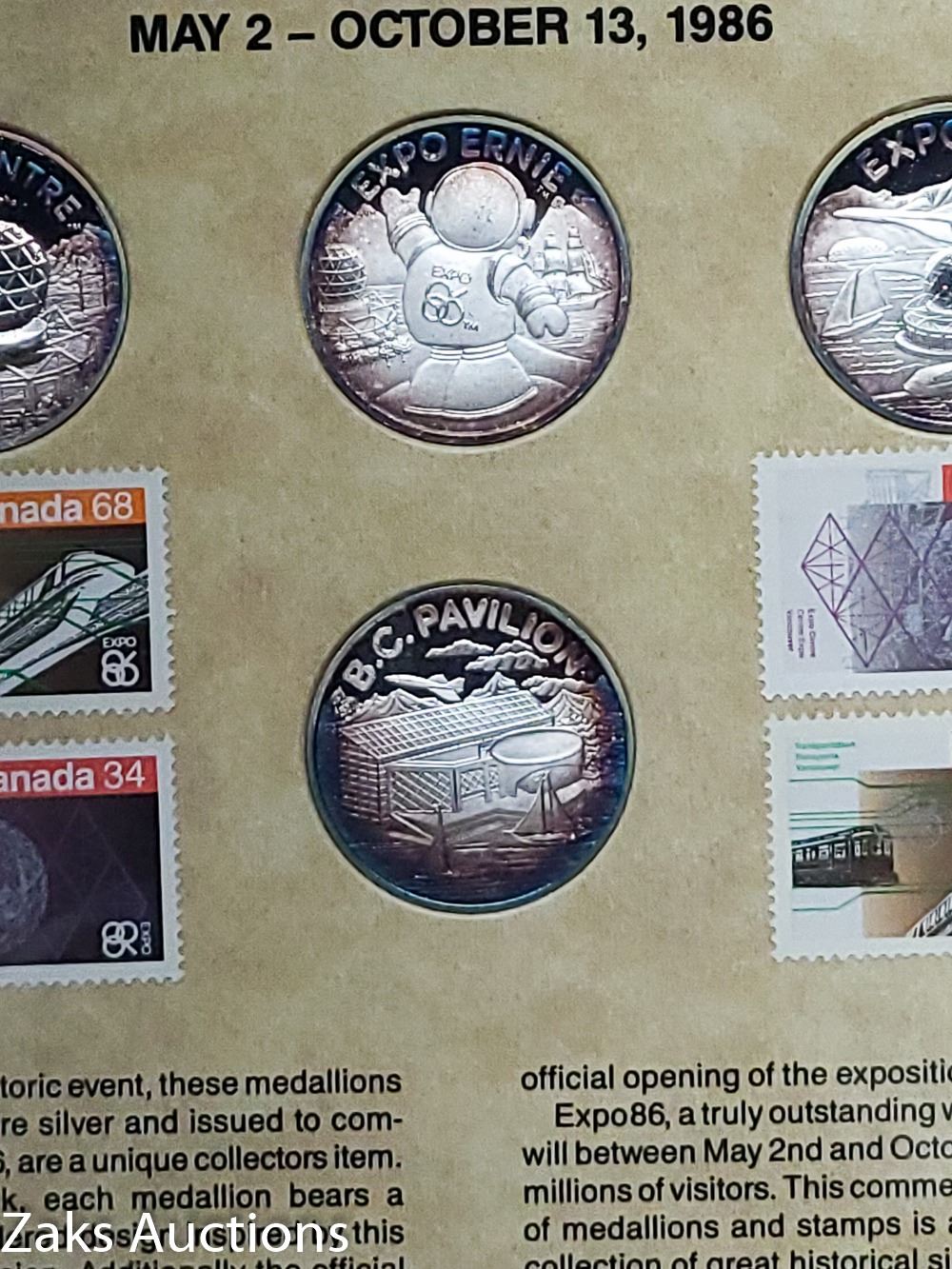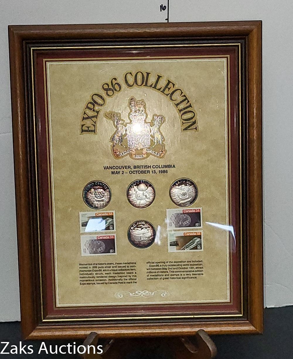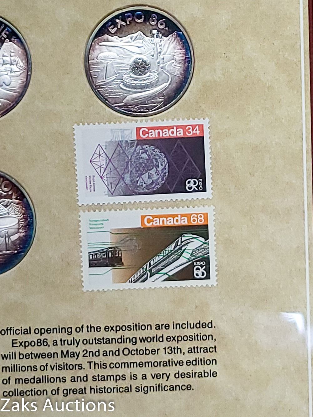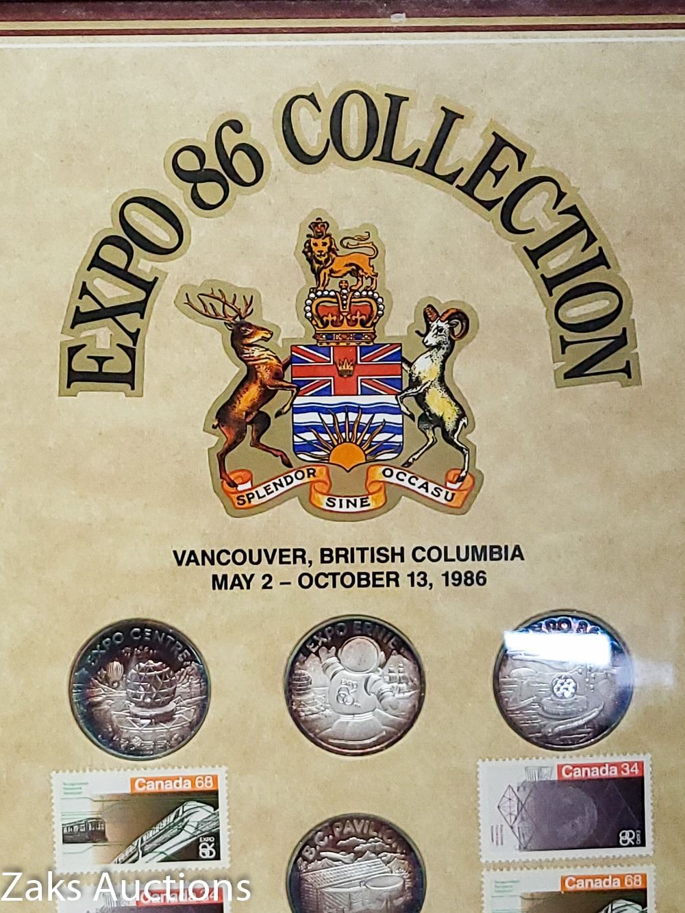 EXPO 86 COIN AND STAMP COLLECTION FINE SILVER. SILVER COINS. NO GST.