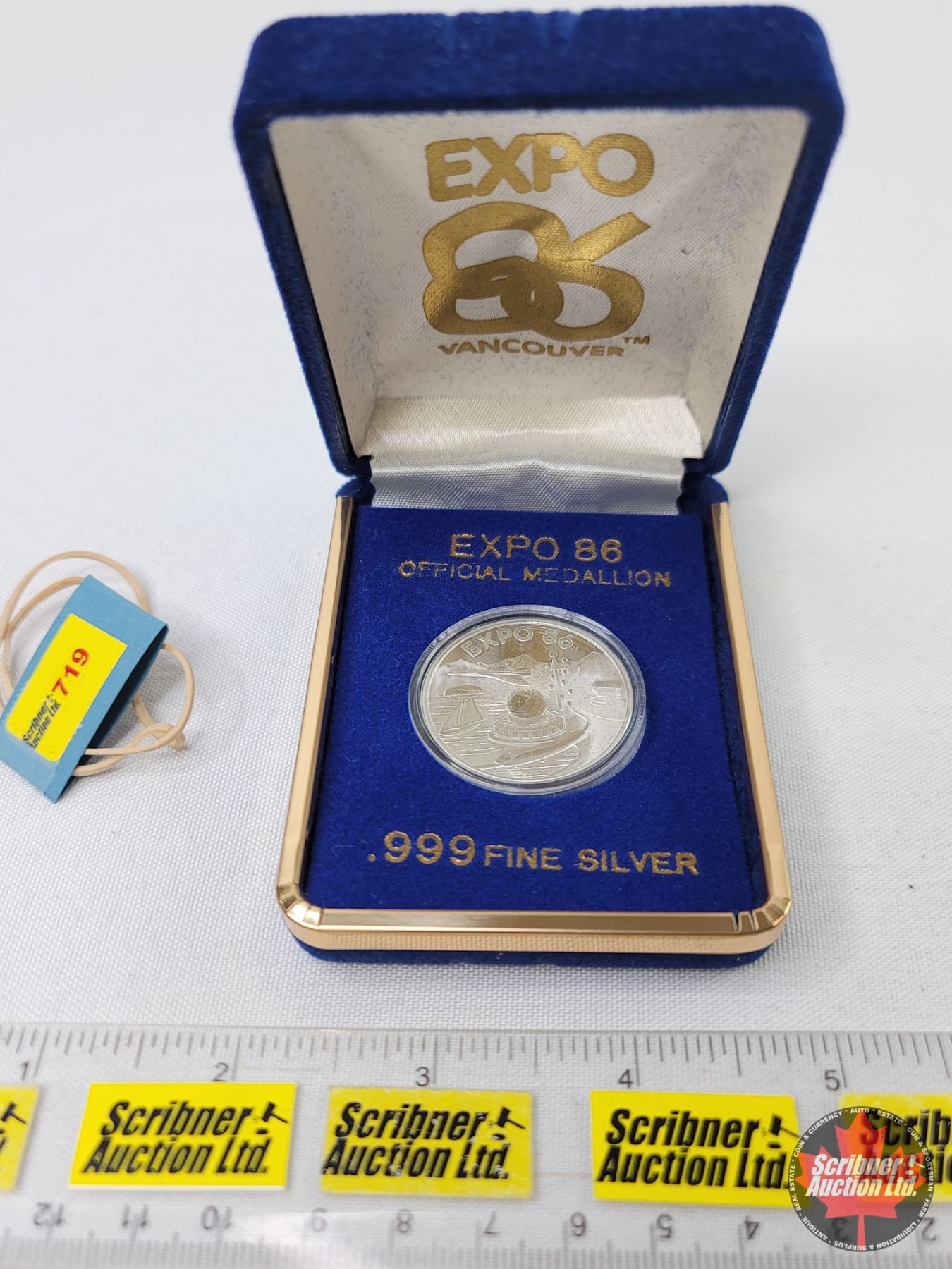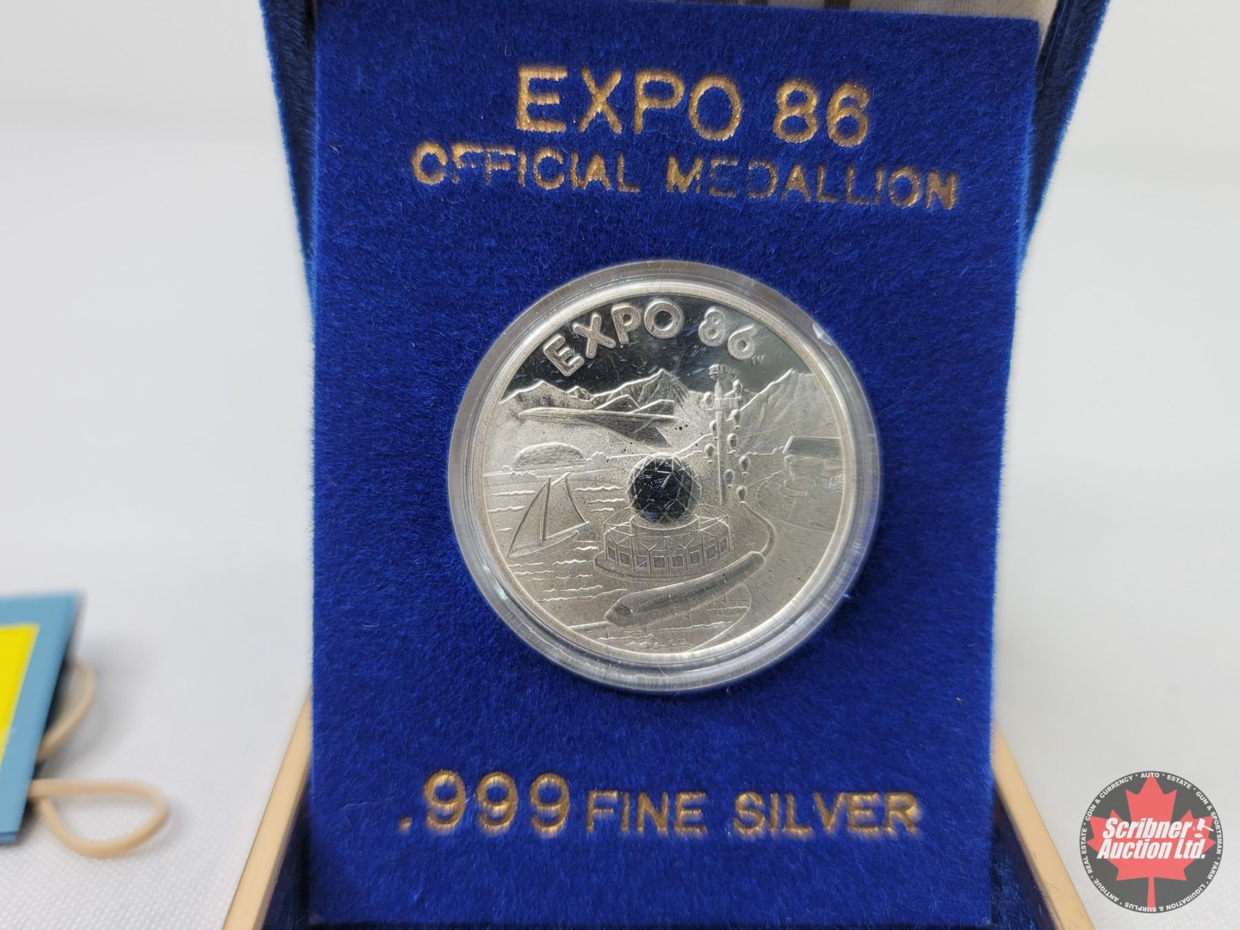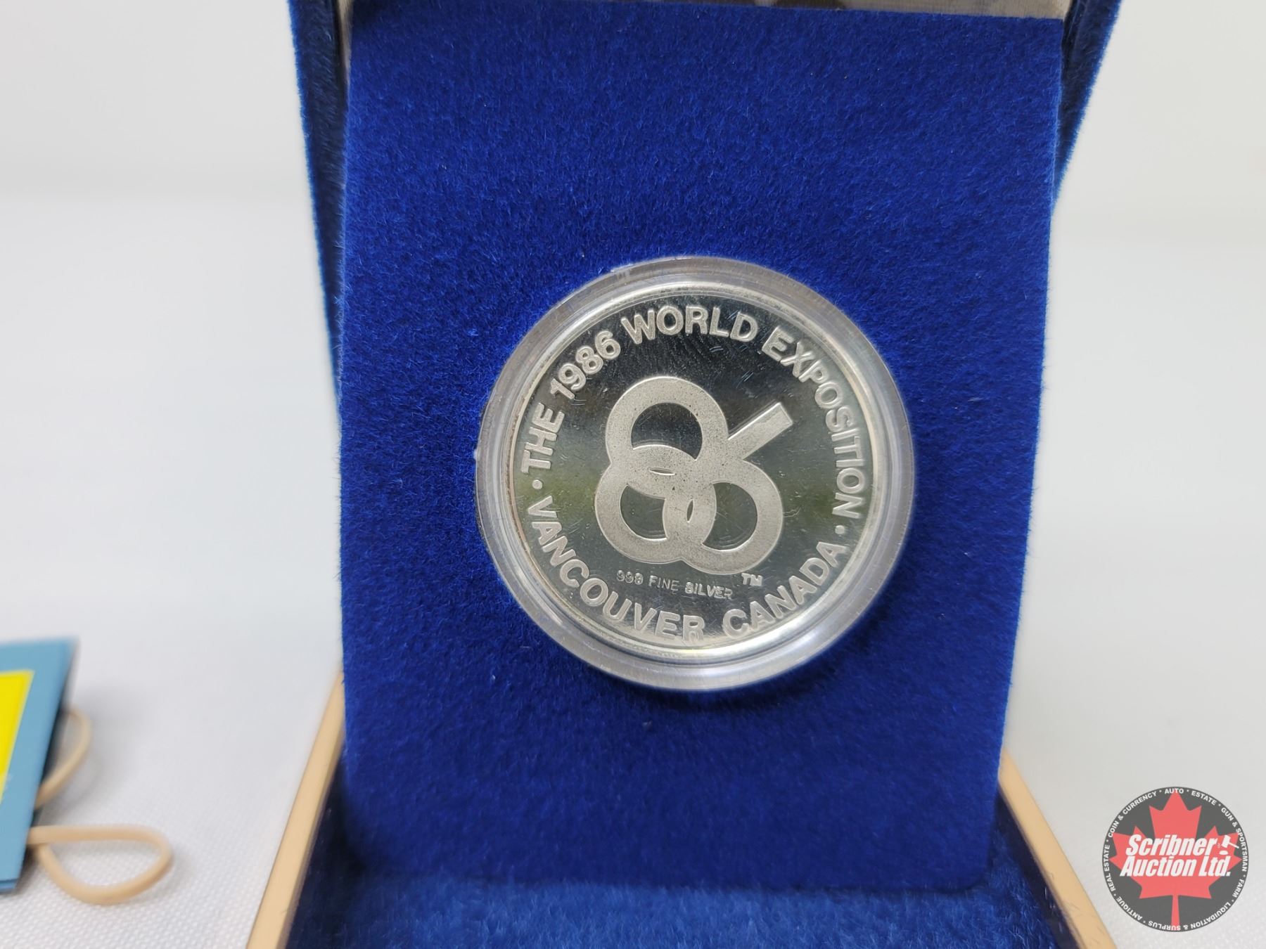 EXPO 86 Vancouver Official Medallion (.999 Fine Silver) (Blue Case) (SEE PICS!)