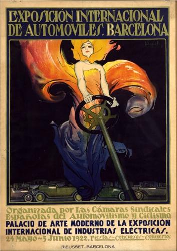SEGRELLES, J. EXPOSICION INTERNACIONAL DE AUTOMOVILES. BARCELONA. 1922. 76x55,5cm. (29,8x21,7in.). Litografía. B+. Enmarcado.