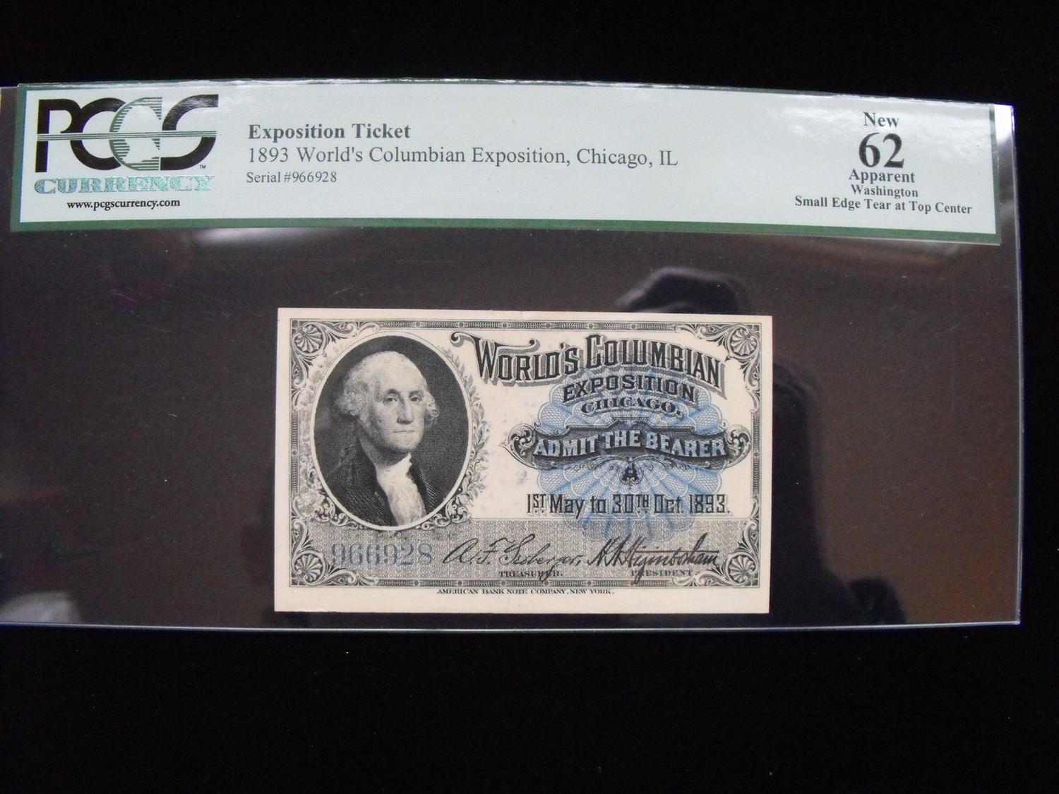 EXPOSITION TICKET PCGS UNC 1893 WASHINGTON
