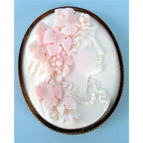 Beautiful Angel Skin coral cameo in a great 14k gold frame. Good Victorian carving in good order no damage. Circa 1880 and a top quality piece. About 2.5" tall