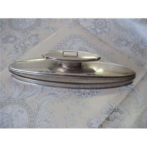 <table width="100%" border="0" cellspacing="0" cellpadding="4"><tr><td><em> Hard to find complete with sterling holder!</em></td></tr><tr> <td width="100%"> Beautiful 1920s Sterling Silver nail buffer and stand. This is a most wonderful large nail buffer measuring an impressive almost 6 and ½ inches in length, made by International Sterling. It has lovely engraving with 2 separate areas for a monogram (never has been engraved with initials). The nail buffer is in wonderful condition, the sterling silver is without any dings or other damage, just gorgeous! Imagine this one on your dresser top!If you enjoy collecting antique and vintage lace and linens, barkcloth, all things roses, Limoges & English china,Shabby Chic, Romantic Cottage and Paris Apartment décor , you may wish to bookmark us since we list often. Thanks and enjoy your day </td></tr><tr> <td> </td></tr><tr> <td>Reference #: CA290</td></tr><tr><td>Condition:Very Nice</td></tr><tr><td>Year:1920s</td></tr><tr><td>Title:EXQUISITE ART DECO STERLING NAIL BUFFER SET</td></tr><tr><td>Location:WA</td></tr></table>