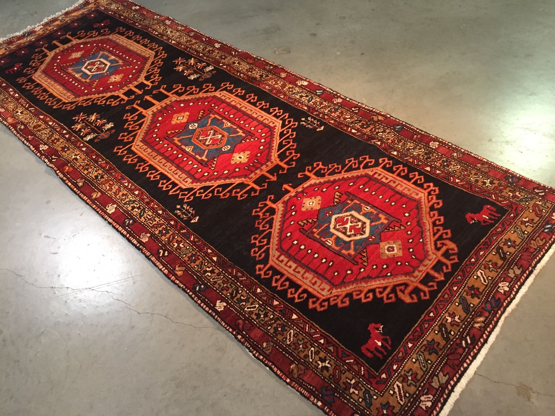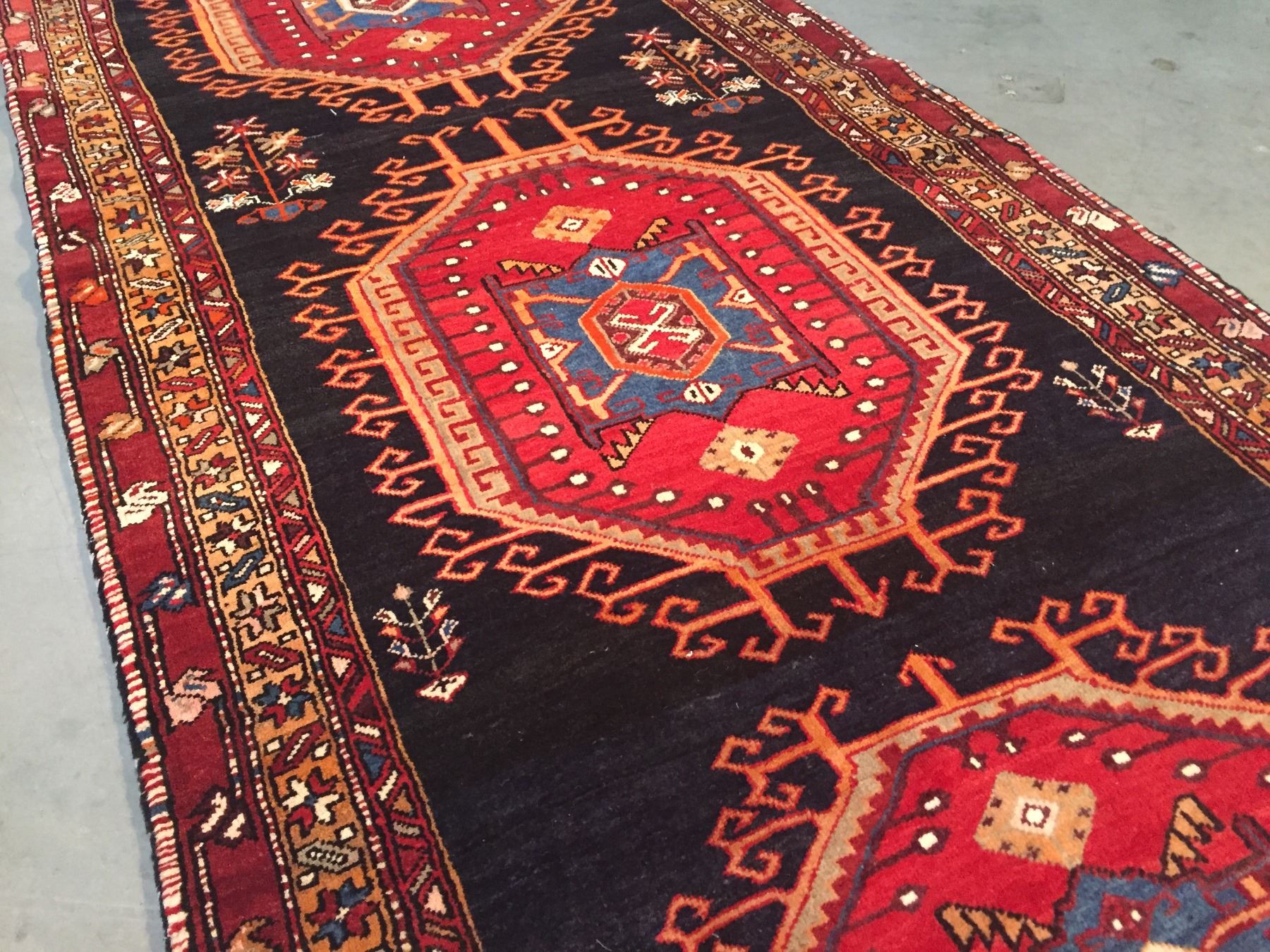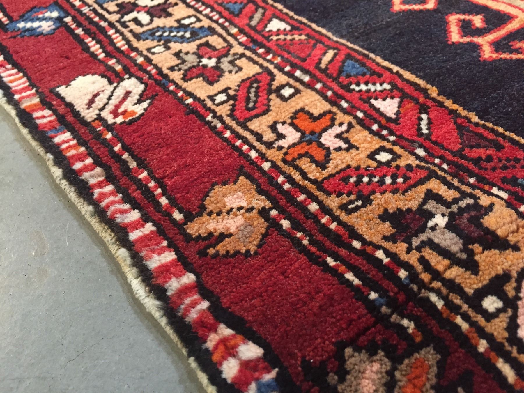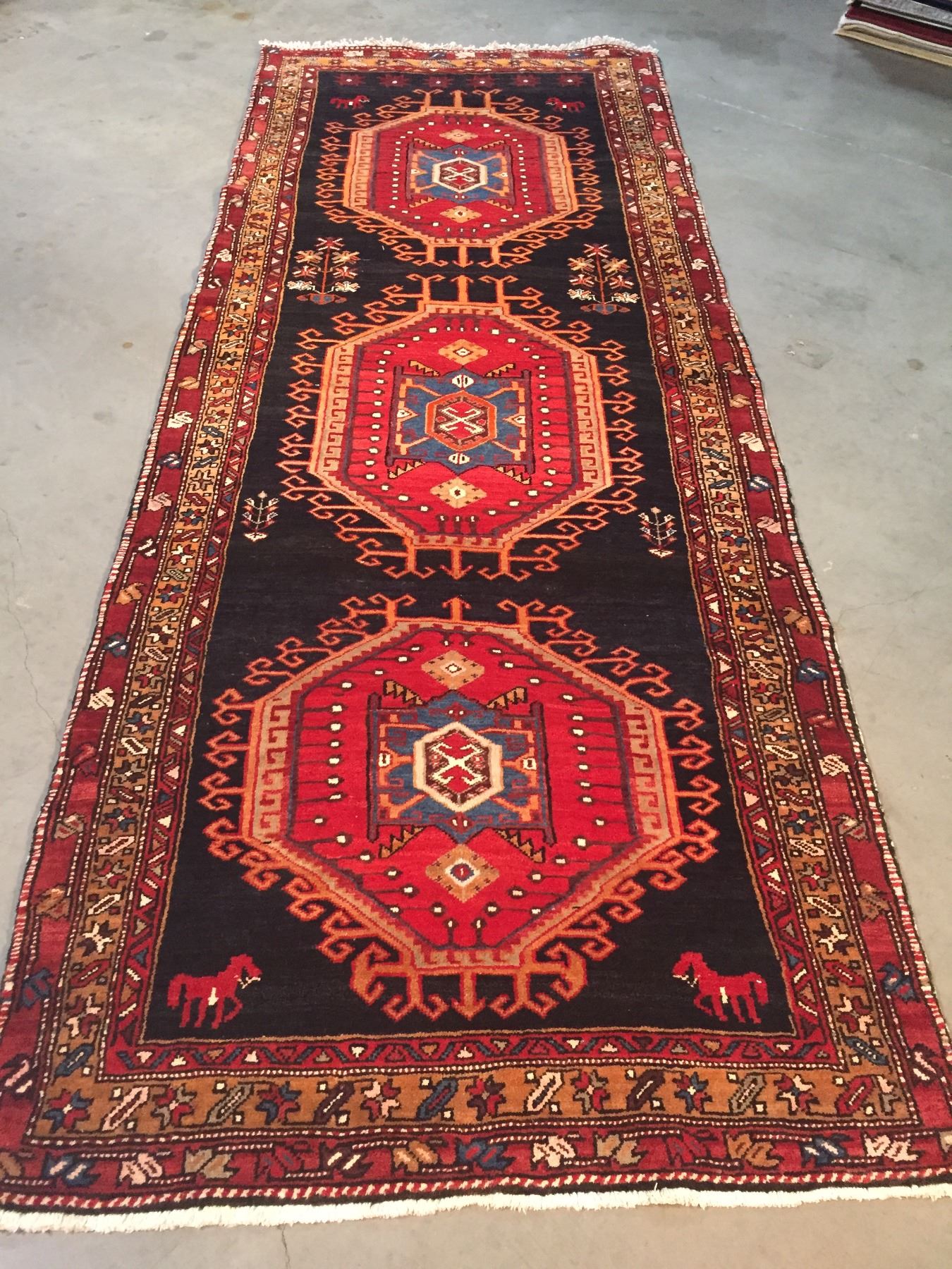 3'.8"X 9'.9" Beautiful and eye catching Authentic Persian Hamedan Runner,Geometric pattern , in multi colors, Vege dye Hand Knotted in Iran 100% Natural wool pile