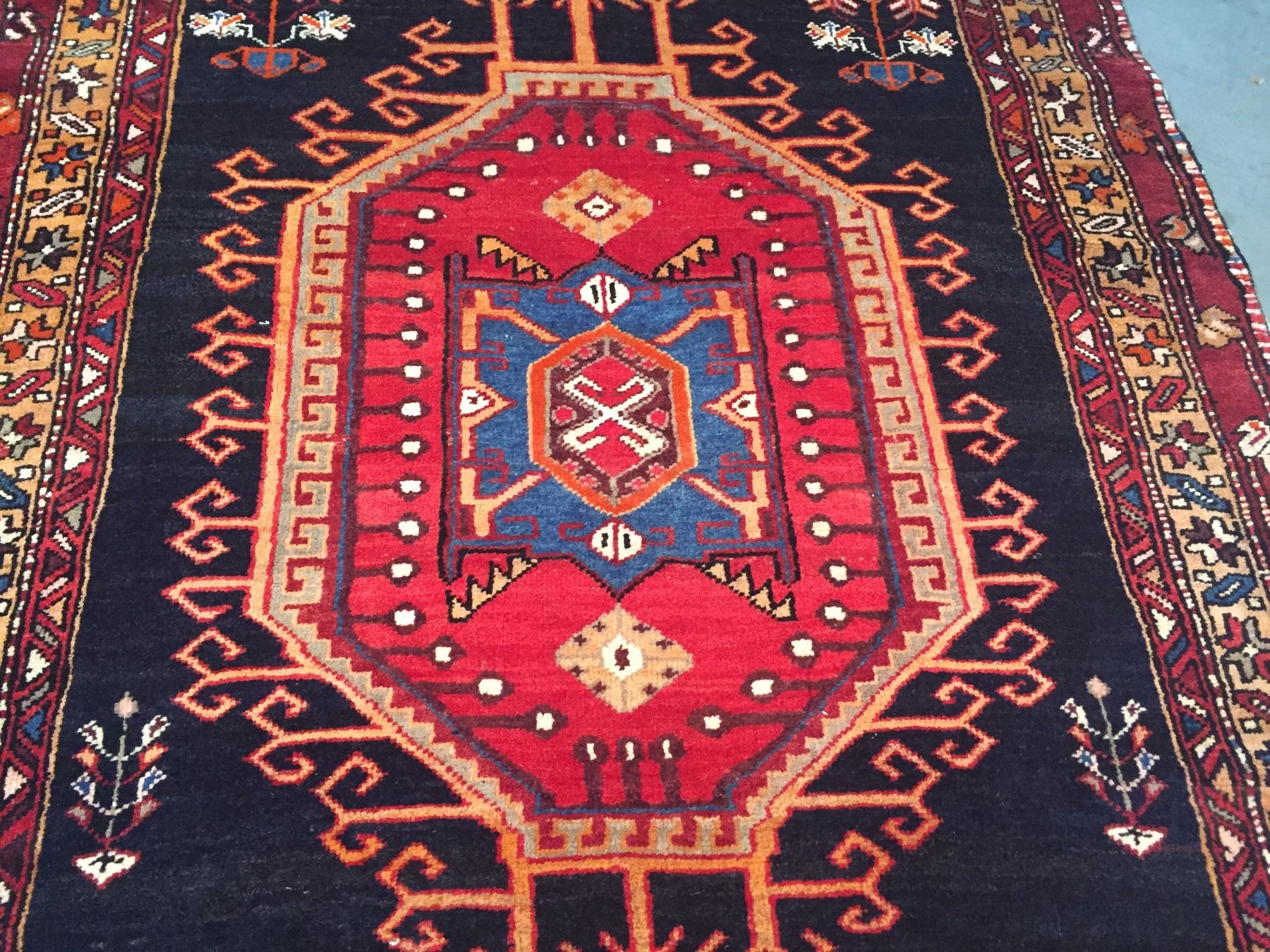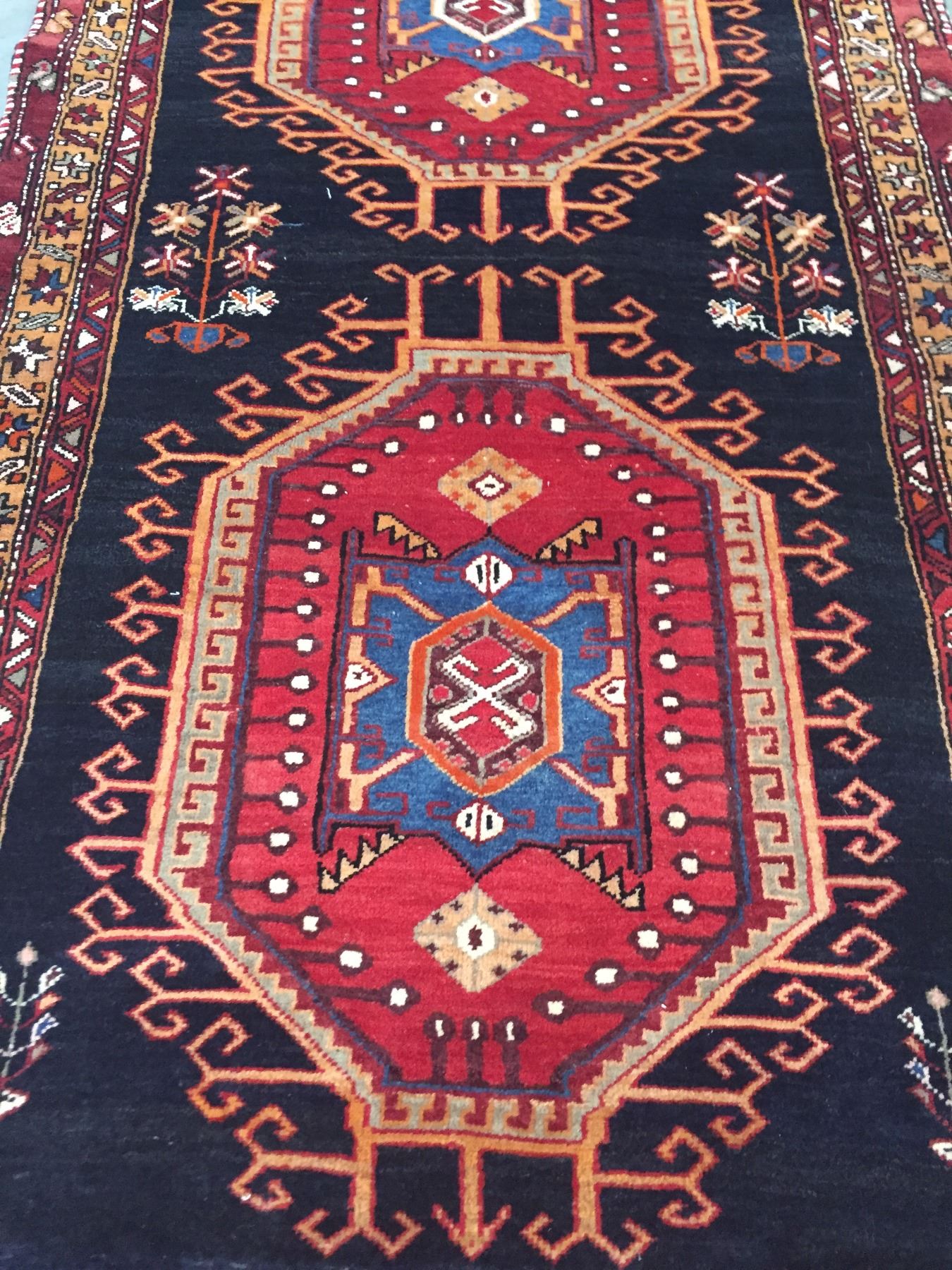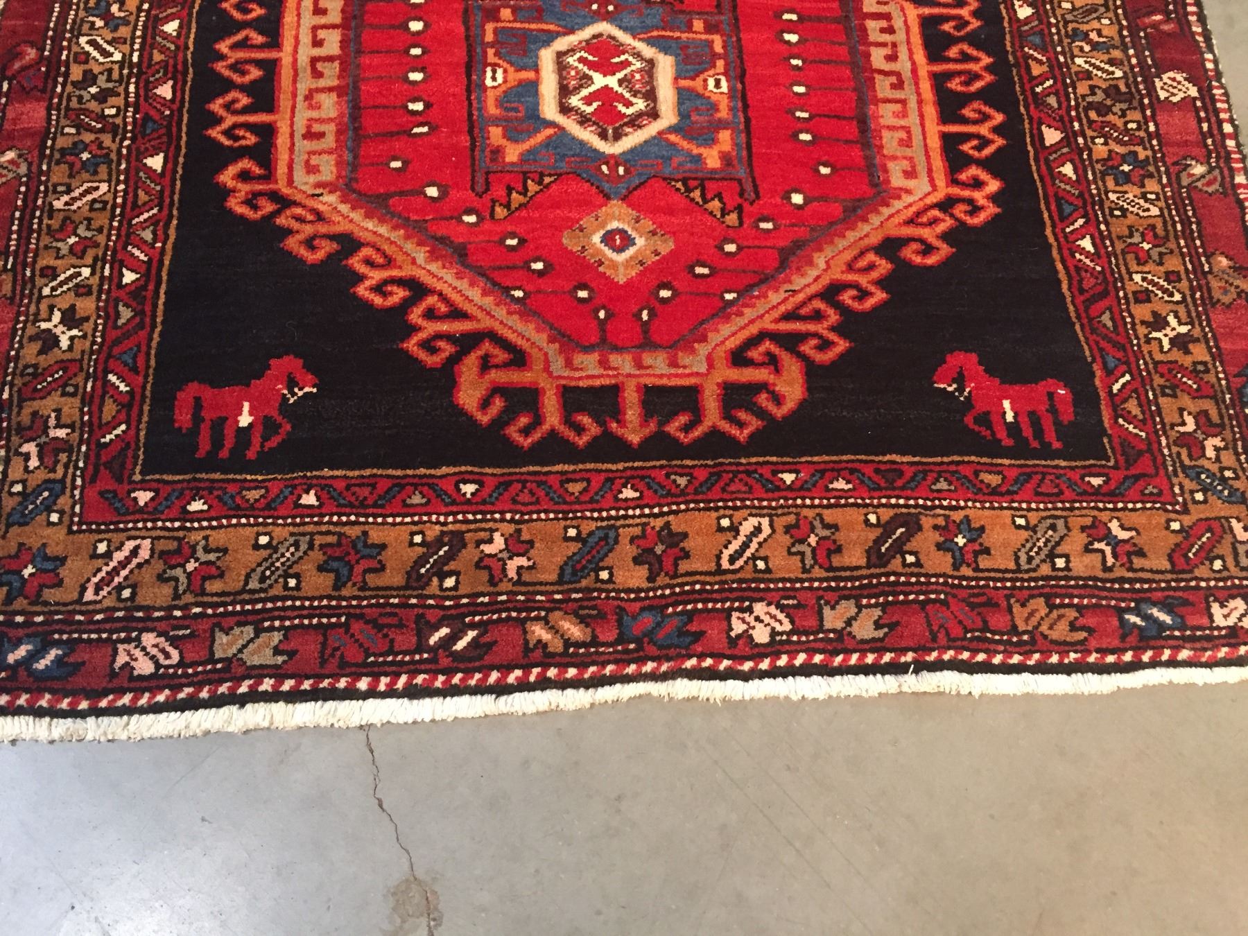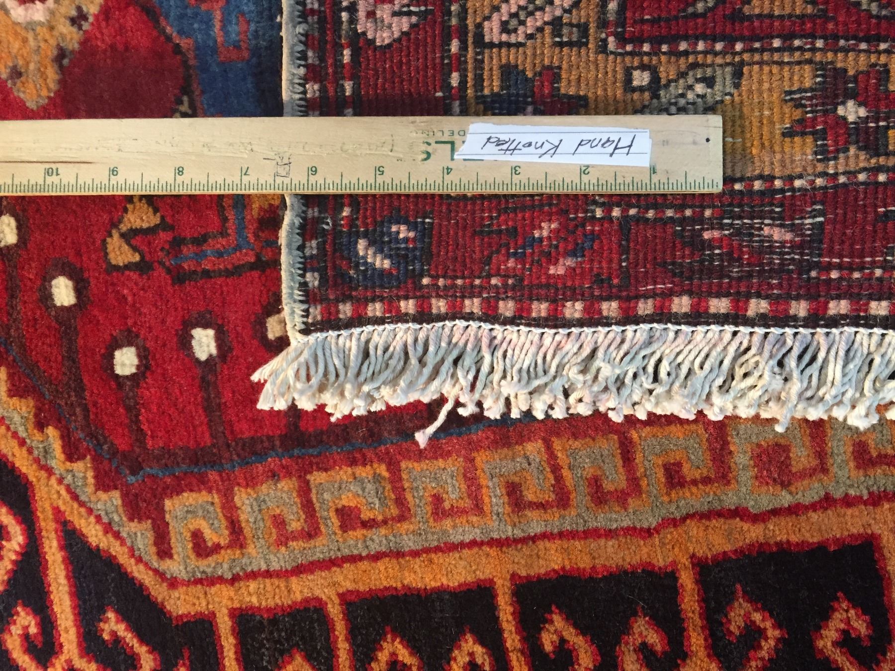 3'.8"X 9'.9" Beautiful and eye catching Authentic Persian Hamedan Runner,Geometric pattern , in multi colors, Vege dye Hand Knotted in Iran 100% Natural wool pile