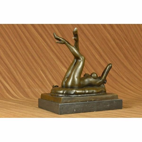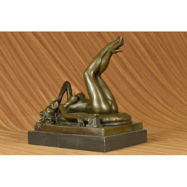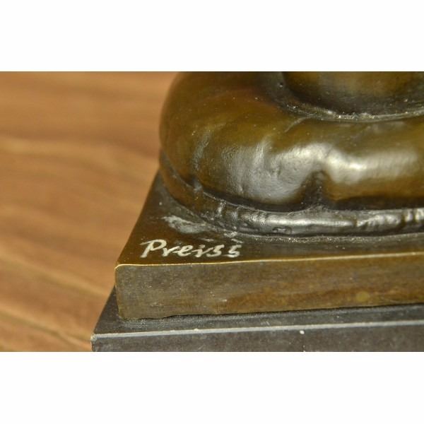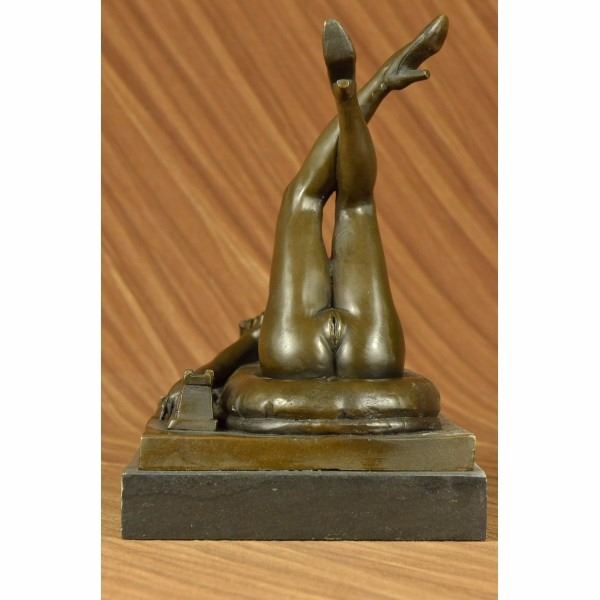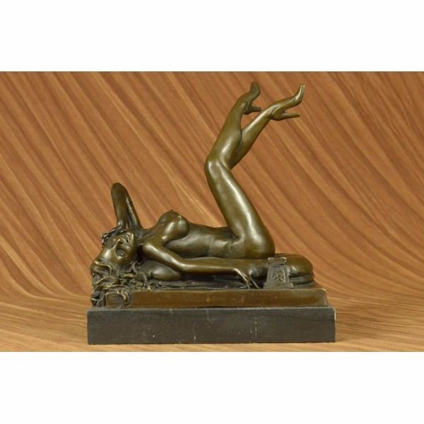 This pin-up Girl holds a phone while resting fully nude with certain sexy, provocative allure while maintaining that tasteful, classy look allowing you to display it in any room.This is sculpture rests on a black marble base. It was crafted using the lost wax method and is signed Preiss. Condition: This sculpture is in perfect condition. Bronze Dimensions with Marble Base:Height 10" x Width 12" Marble Dimensions:8.5" X 6.5". Height without base: 9" Weight : 13 LBS Inventory:54YRD10205145