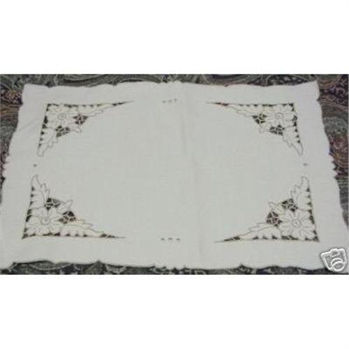 SET OF FOUR BEAUTIFUL LINEN CUTWORK AND EMBROIDERY PLACEMATS, THIS IS VINTAGE SET WITH GREAT QUALITY CUTWORK AND EMBROIDERY IN BROWN THREAD ON LOVELY CREAM COLOR LINEN, EXCELLENT CONDITION TO ME IT SEEMS HARDLY OR NOT USED AT ALL, EACH MEASURES 17 1/2" X 11 3/4".USBuyer to pay 4.00 plus insurance.THANKS.