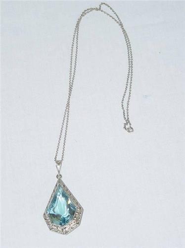 EXQUISITE LADIES 14K WHITE GOLD LARGE APPROX. 1 3/4" AQUAMARINE PENDANT, FANCY LEAF MOUNTING;
