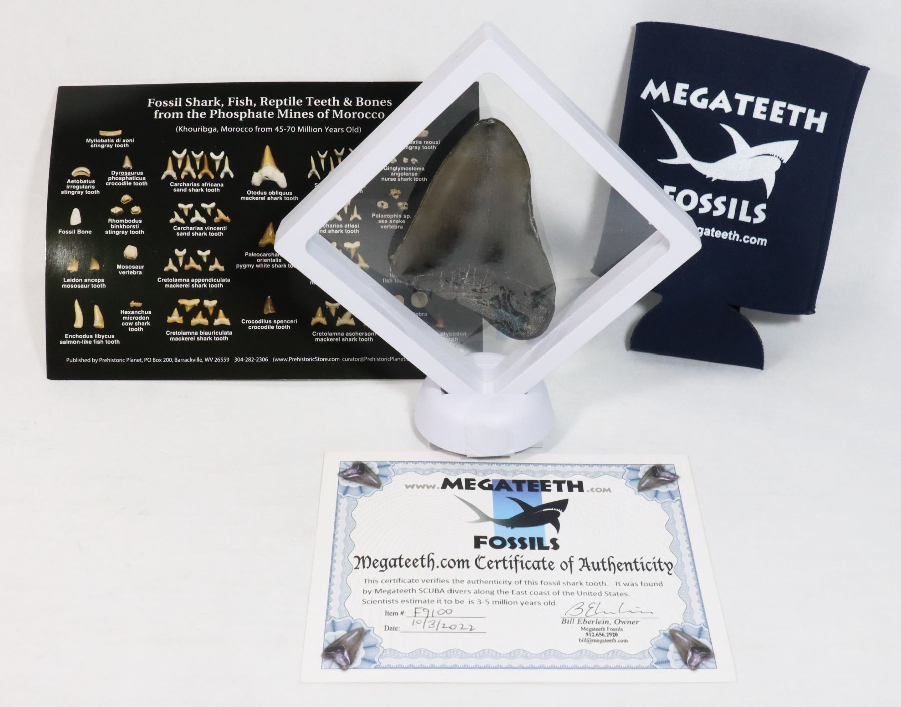 EXQUISITE MEGALODON TOOTH WITH COA, COMES IN