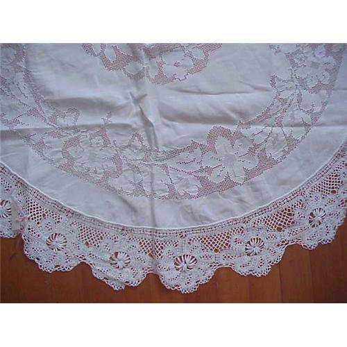VICTORIAN HANDWORKED ROUND LINEN TABLECLOTH </em></td>